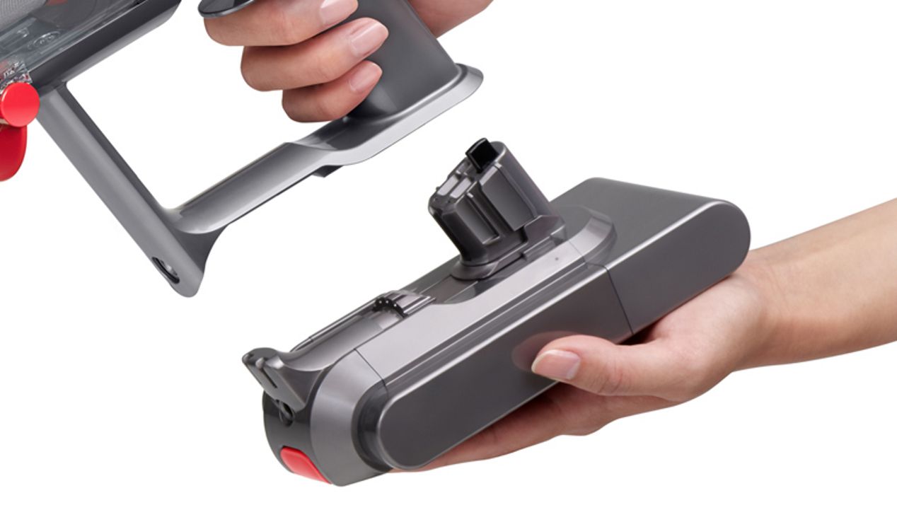 Remove and replace at the press of a button for even longer cleans. Click-in batteries can be charged on or off the machine.